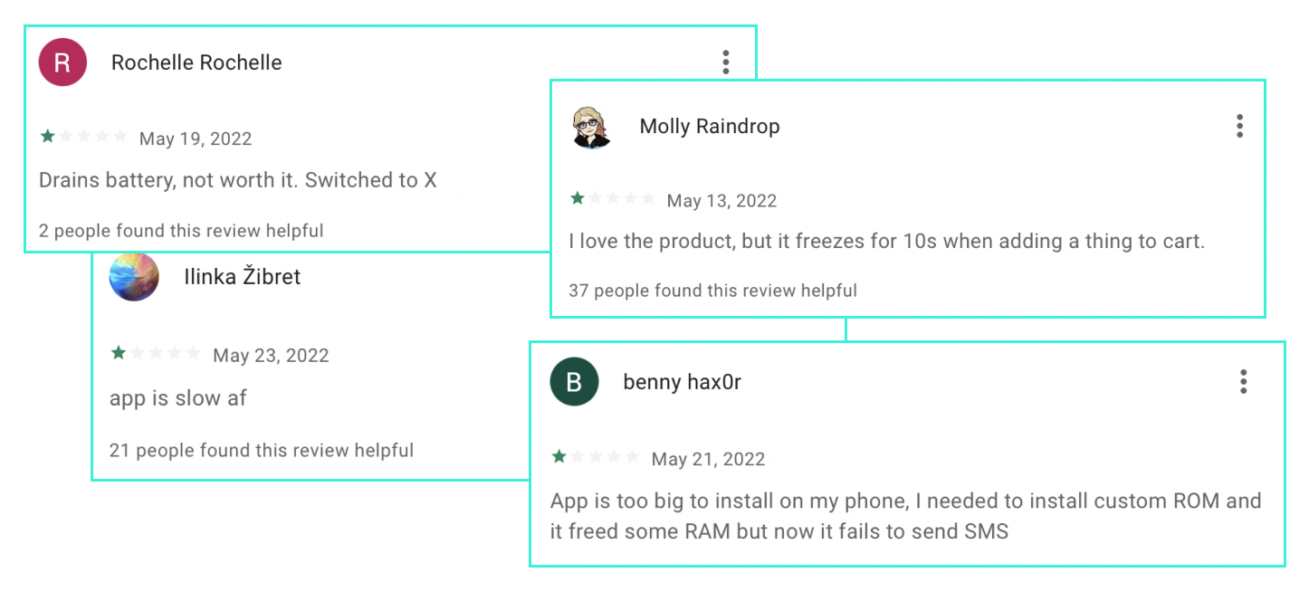 We’re happier with our workflow now; it works well. We’re adding feature after feature. Our app release cycle is so well designed that even adding ten new developers doesn’t slow us down. Until we take a look at our app reviews: