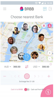 Users can provide their own peer to peer banking services on the app. In an instance when you receive a currency which isn’t used in your location, you can locate other BABB accounts near you, who will accept the digital currency and exchange it for physical cash. Anyone can provide these services and charge a small fee for being a local currency exchange.