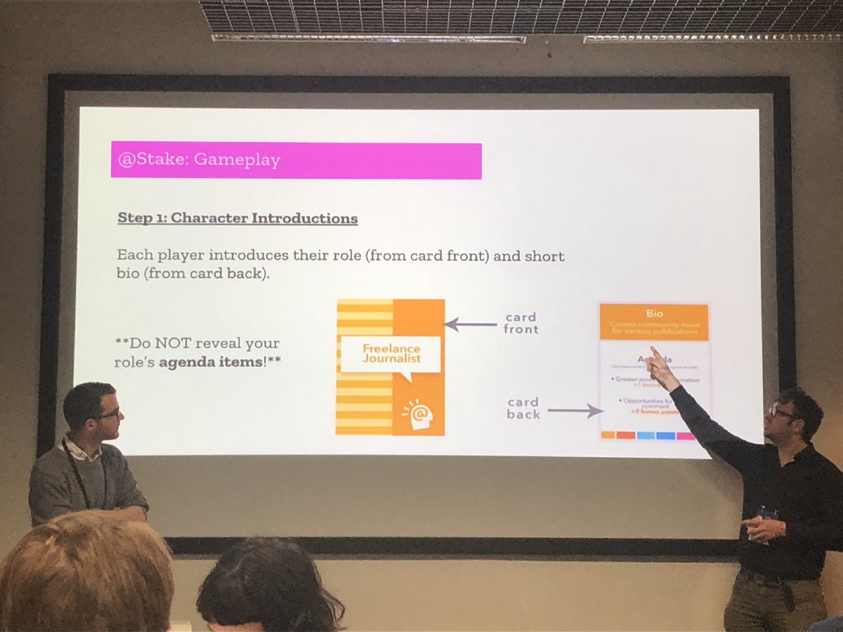 The session was centered around using guided role play as a framework to brainstorm solutions to civic challenges.