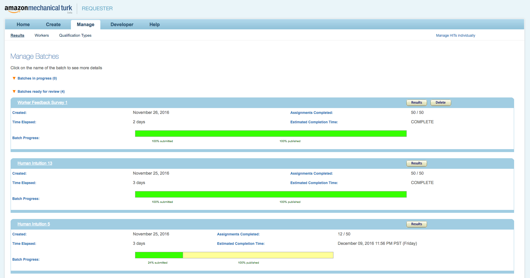 You can also view the results that have come in and manually approve workers for payment at this time.