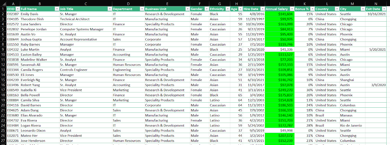 # If the condition is met, apply a green fill to the Annual Salary cell
