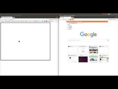 Any client that connects will now be able to draw the state of all connected players onto the canvas. Run the server (again using the command node server.js) and open two tabs in your web browser. If you navigate to http://localhost:5000, you should see behavior similar to this: