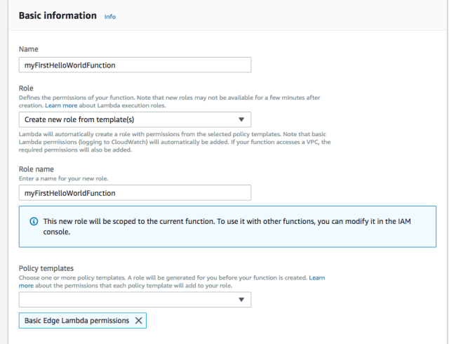 - From the list of Policy templates, select Basic Edge Lambda permissions.