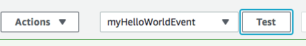 Now, ensure that the myHelloWorldEvent event is selected in the events list to test your AWS Lambda function in the Console, next to the Test button:
