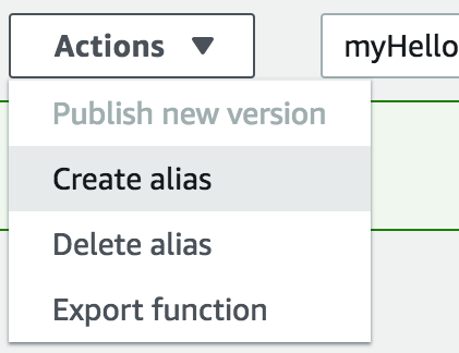 In the AWS console, from the Actions dropdown, select Create alias: