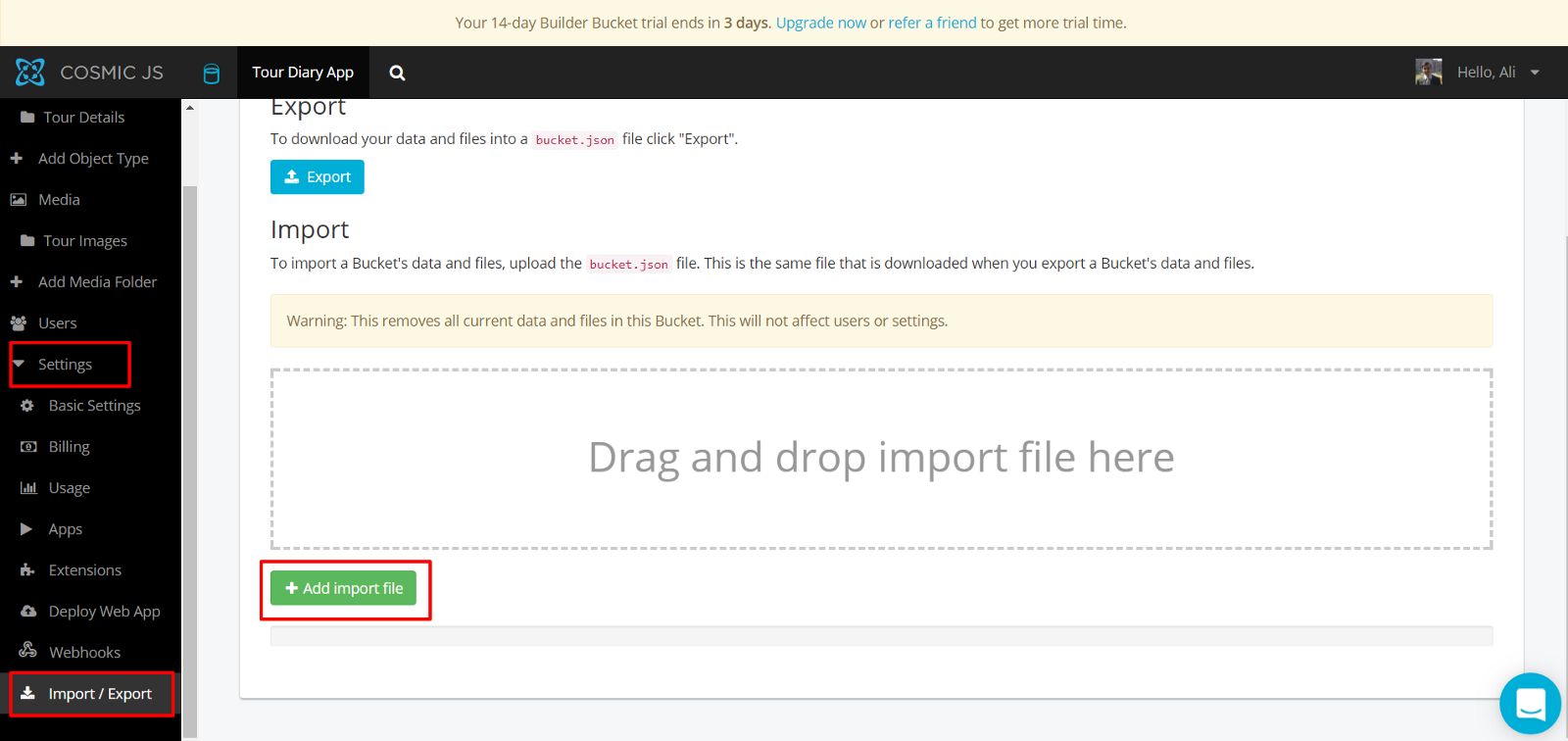 **Import Bucket Data:**Download this bucket.json file. And in Settings -> Import / Export Data, click “Add Import File” and choose the downloaded file. It will import all the Object Types and required data.