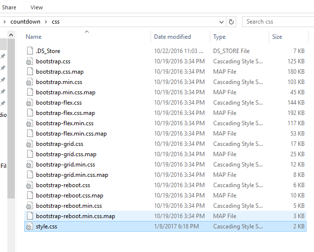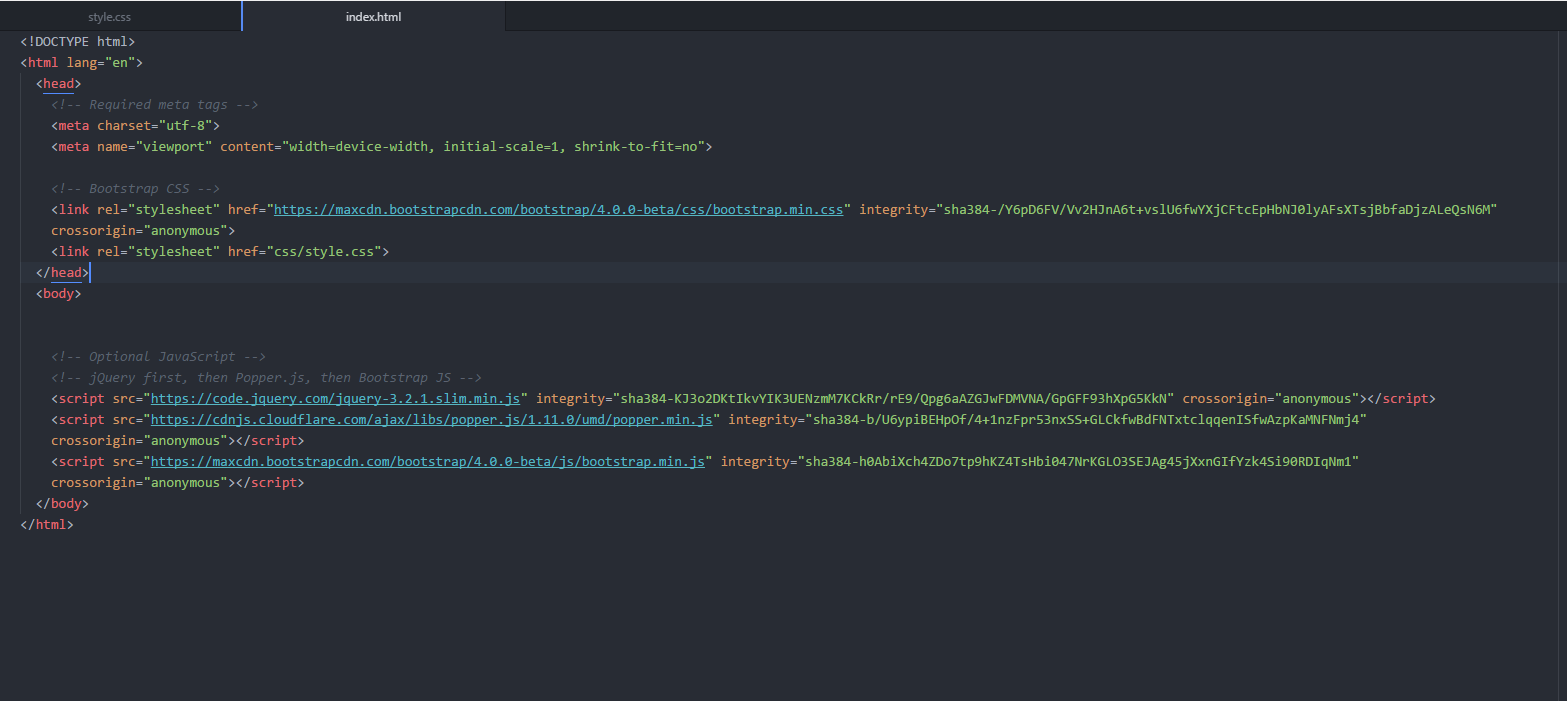 We have some files from Bootstrap but we are missing the index file and also our stylesheet.
