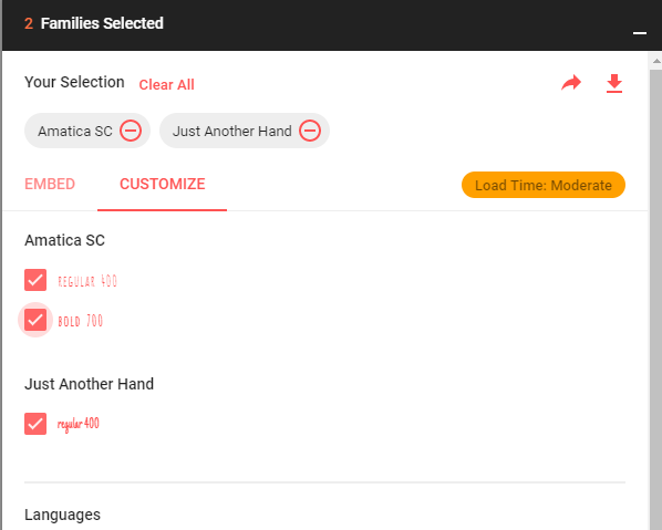 Repeat the same procedure, go to Google fonts and get Amatic SC and add the Bold option to the font.