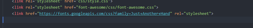 <link href=”https://fonts.googleapis.com/css?family=Just+Another+Hand" rel=”stylesheet”>