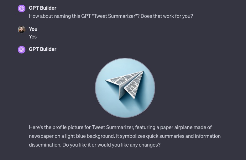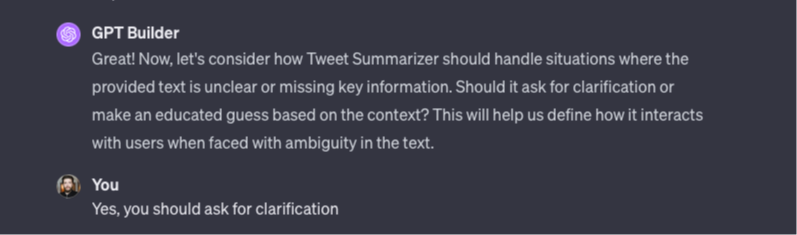 GPT Builder will ask additional questions to tune your idea better. You can add as many changes as you wish.