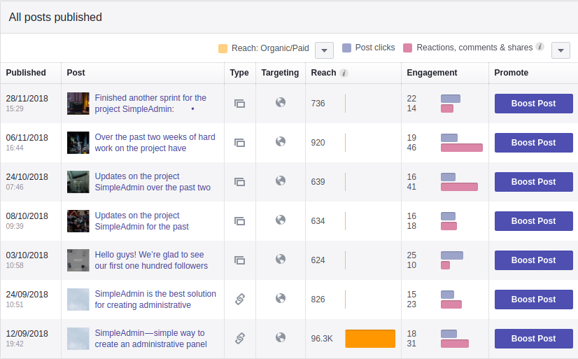 For the sake of experiment, we registered the page on Instagram and simply duplicate the content. Statistics are more modest than on Facebook, but nonetheless.