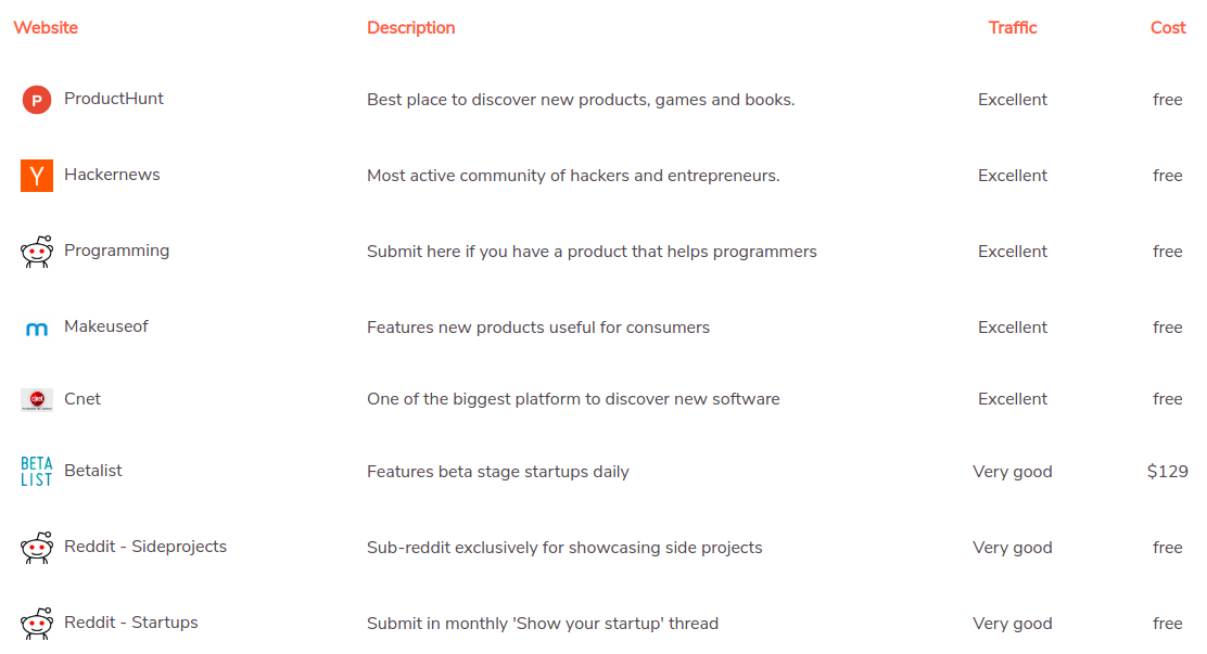 I would like to share with you a list of services where you can post an idea or startup MVP. Most of the websites are free: