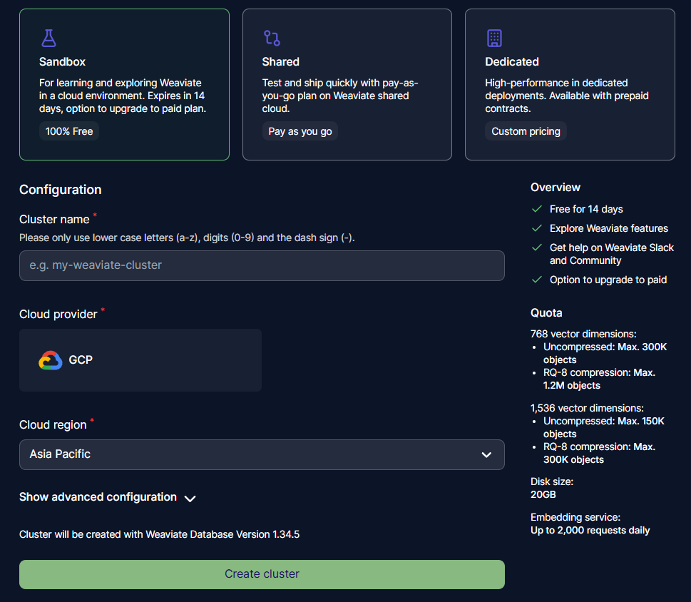 | Free Tier Duration | Forever | 30 days | 14 days (cloud) | Trial (Zilliz) |