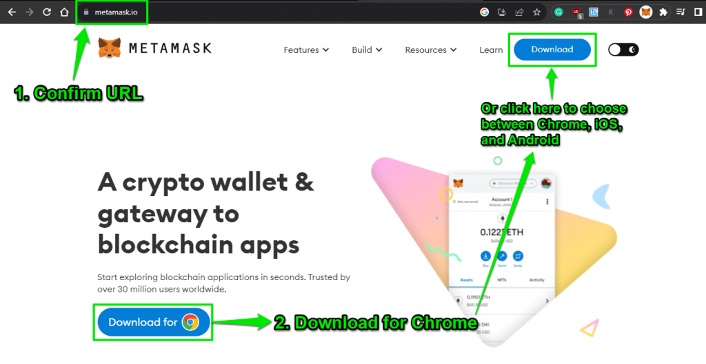 As you may know, scams happen frequently in Web3. You need to make sure you’re downloading the extension from MetaMask’s actual website rather than a lookalike designed to trick people.