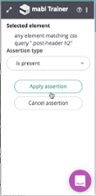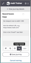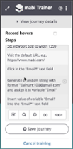 mabl will begin to record every interaction with your app. Clicks are recorded by default, and hovers and JavaScript animations can be too if enabled. The mabl trainer also allows us to add waits if you have long running processes, add assertions, create randomly generated variables to insert into forms, and find elements by CSS or XPath selectors.