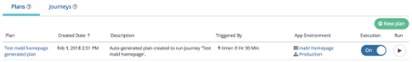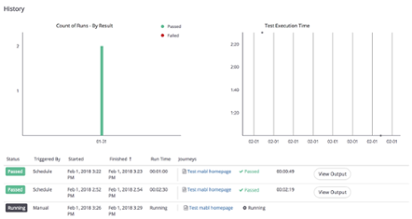 I’ll save this Journey and again, a default Plan is created to run the Journey every 30 minutes. Let’s go into the Test Execution History dashboard for our Email Address Form Validation test. We see that it already completed twice by the time I finished writing this blog: