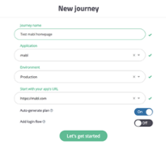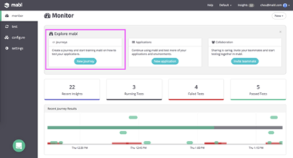 In the mabl dashboard, we have the options to create a new Journey, create a new application, or invite teammates to our Workspace. We’ll create a new Journey: