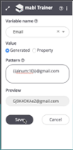 I want to make sure that the email address form validation is working, so I’ll create a randomly generated variable called Email and insert it into the email address form. In the last image below, you can see all the steps leading up to the email form, and our newly created email variable being inserted into the form.