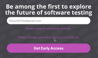 Our Email variable is now in the form, and with a randomly generated string as my email address, I expect to receive a notification label that lets me know my email address is invalid upon form submission:
