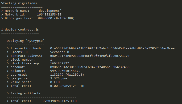 Now we can test deployment to Ganache by typing: