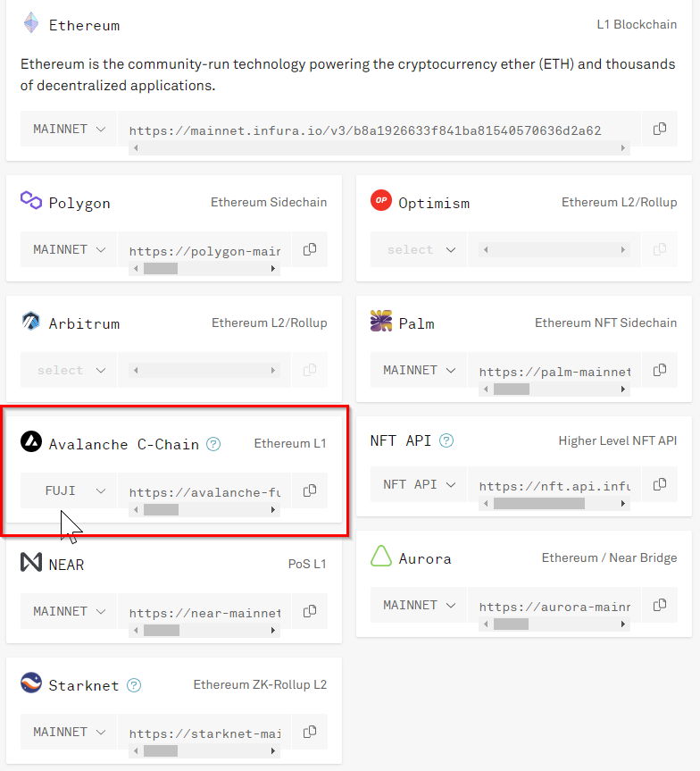 Step 4: Get Infura Avalanche / Fuji URL