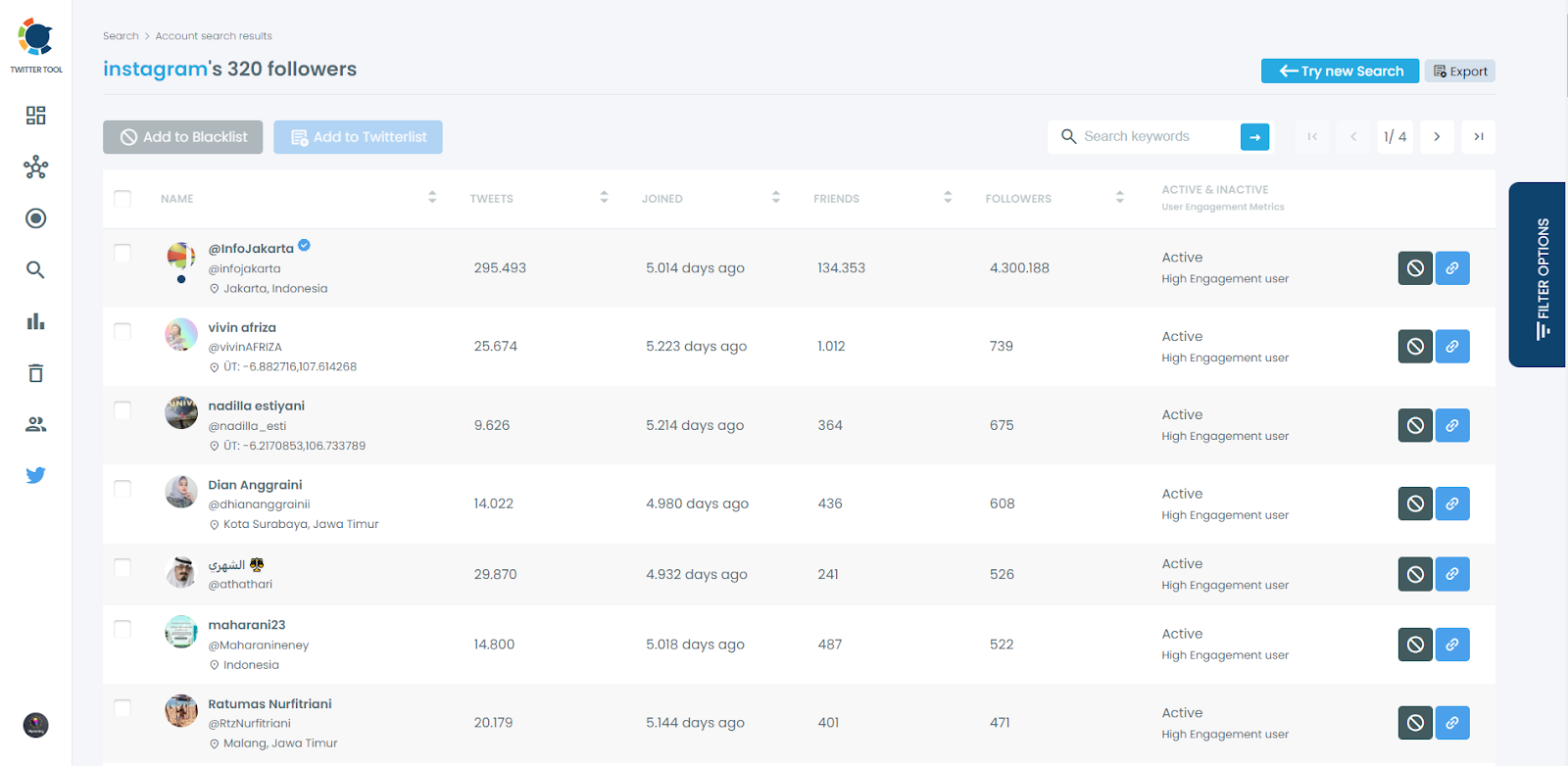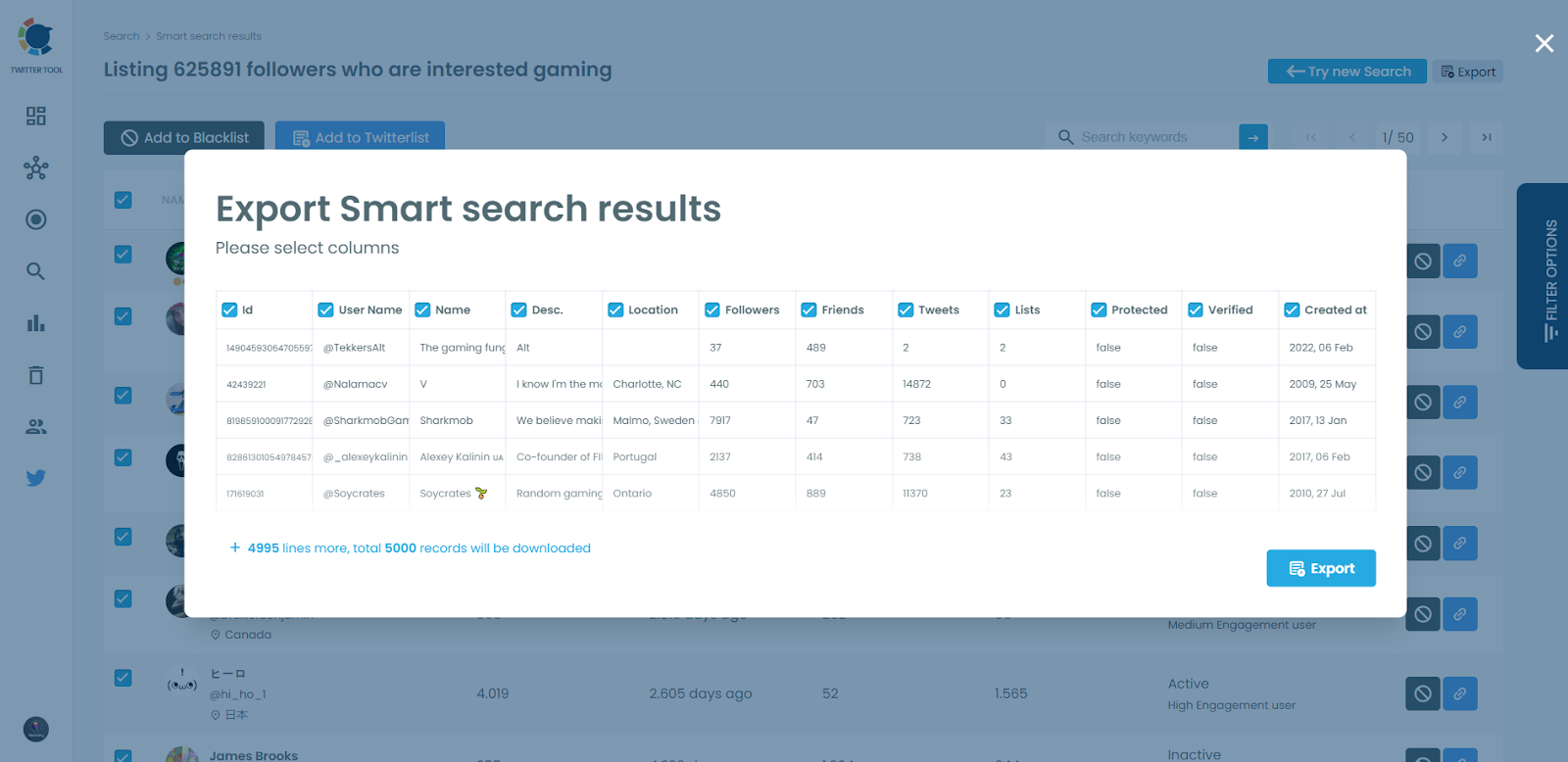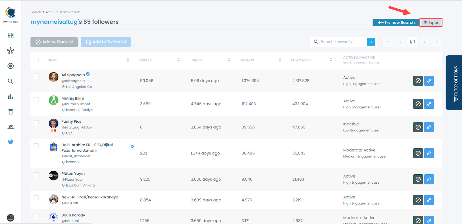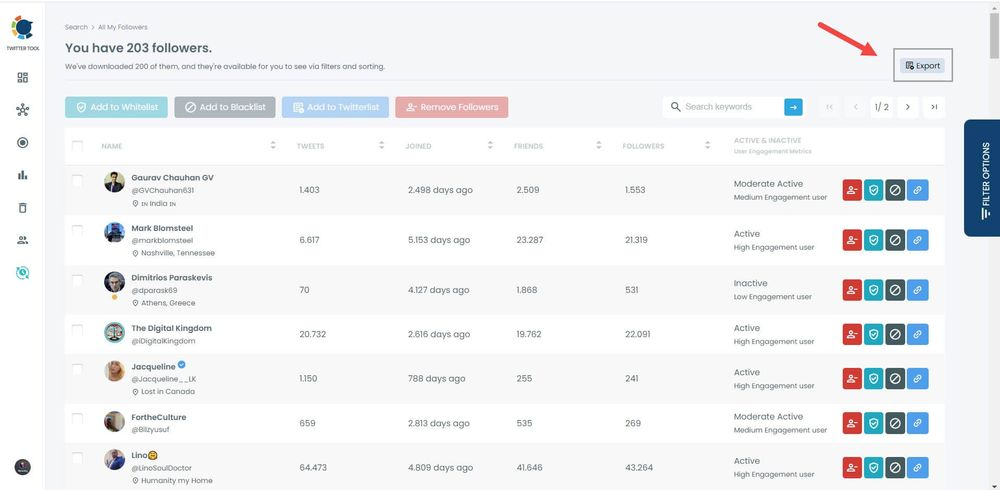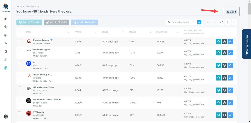 And, you can click on the “Export” button at the top-right and download these accounts.