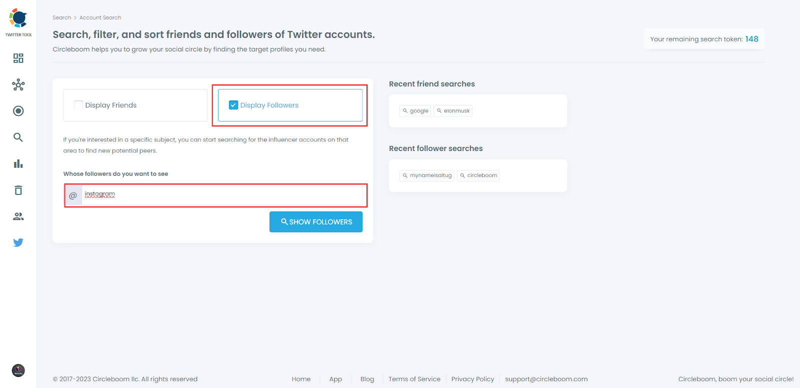 First, we need to know how to search accounts on Circleboom:
