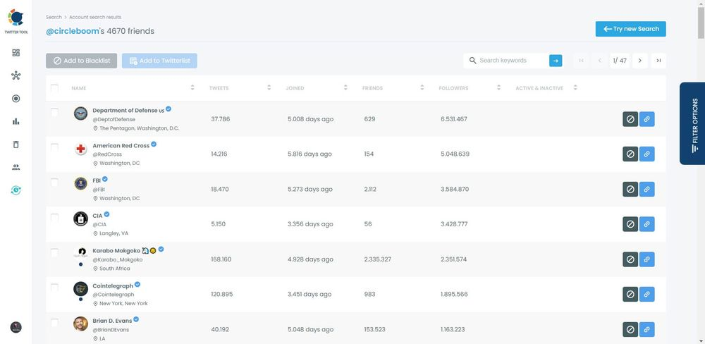 With Circleboom Twitter, you can receive a list of Twitter followers and friends for other users just as you can export a follows and friends list for your own account!