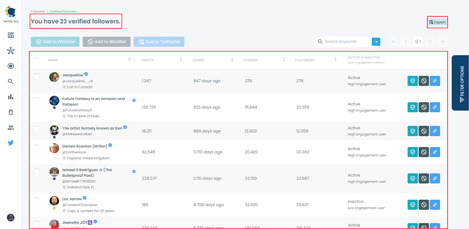 When you have many Twitter followers, exporting all of them may not be necessary. Only verified ones could be useful to target for some purposes.