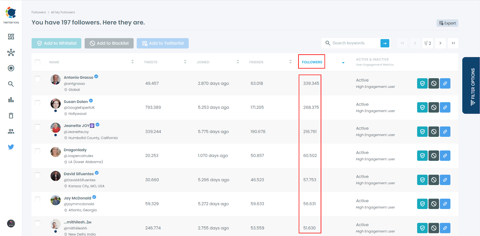 Also, you can sort your followers by their last tweet, follower-friends count, and join date.