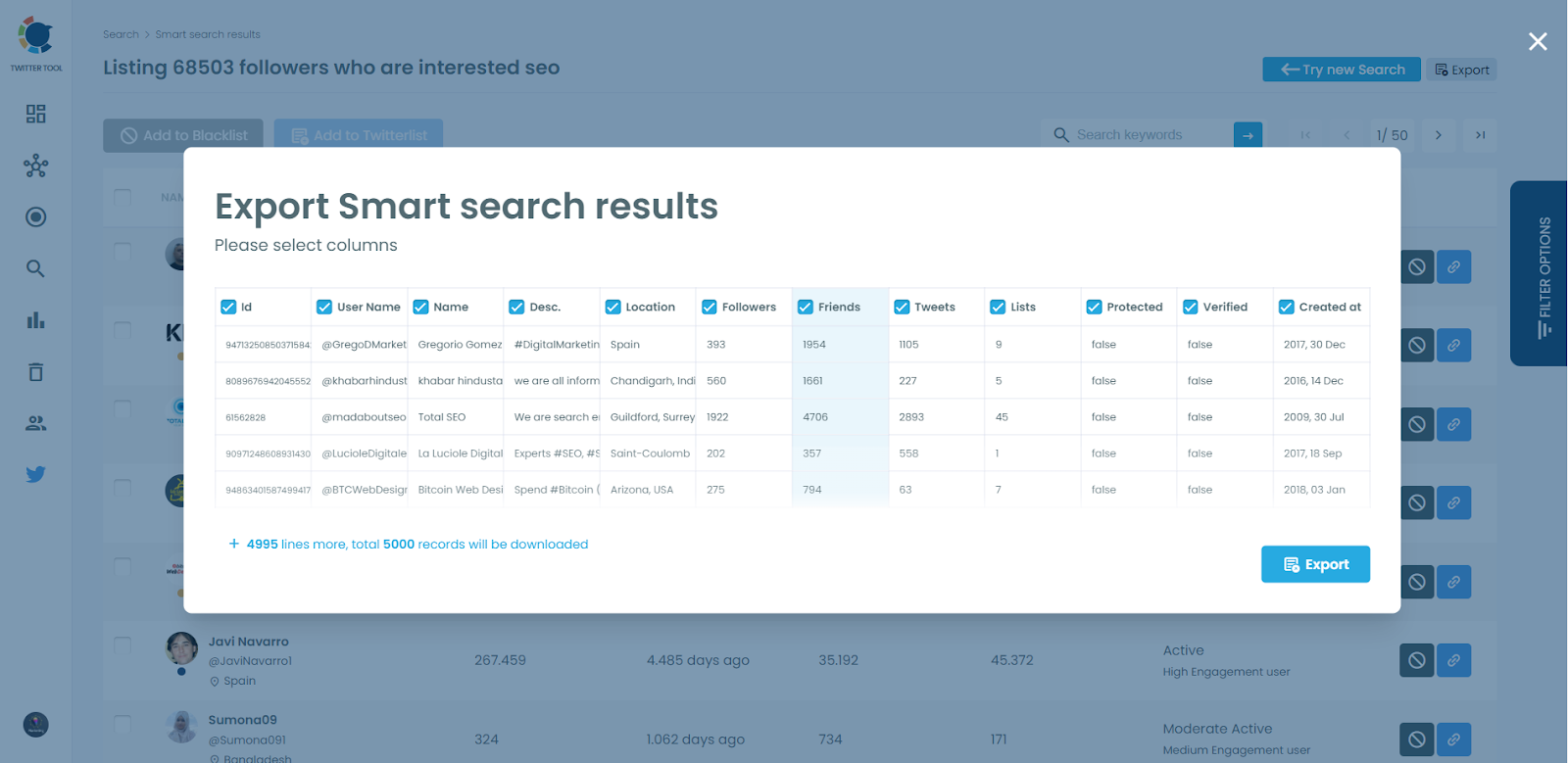 Step #3: You can export your verified followers in Excel or CSV.