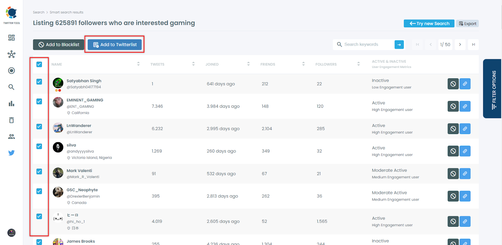 Step #3: Gaming-related Twitter accounts will be listed.