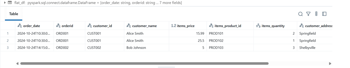 Passing the JSON Data Frame into flatten_df_recursive will flatten all nested structs and arrays, making the data ready for analytics or reporting.