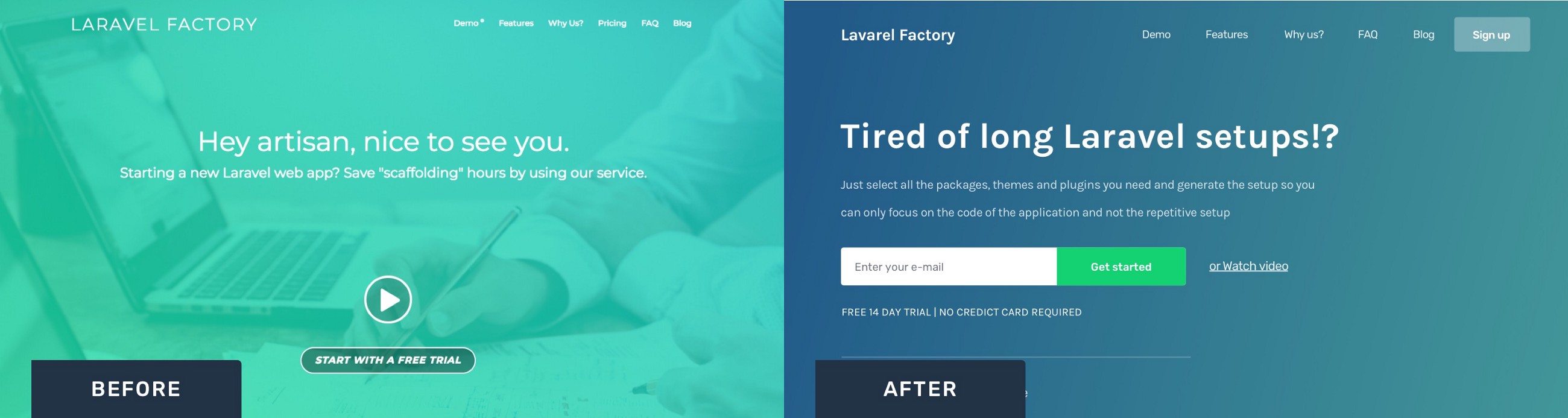 This will be specific to Laravel Factory, if you want to learn my 5 step process to turn visitors into customers that you can apply to your website, here’s my 100% free email course.
