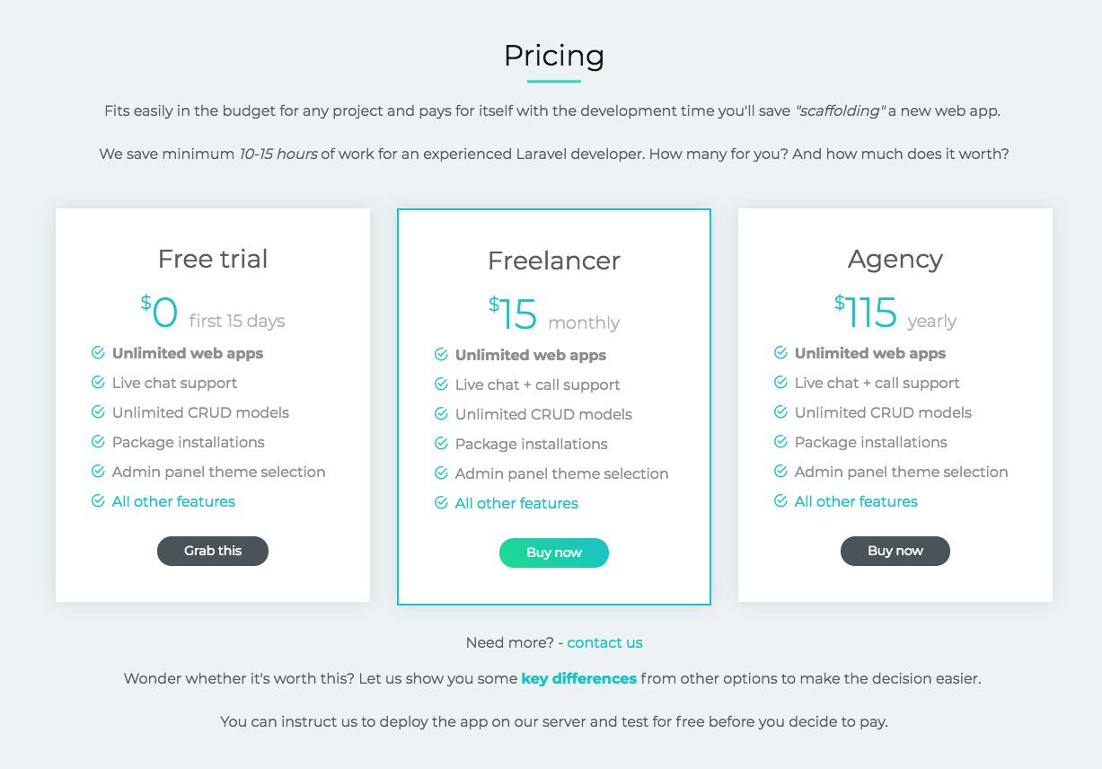 - To help people decide what’s best for them I added “Ideal for freelancers/agencies” instead.