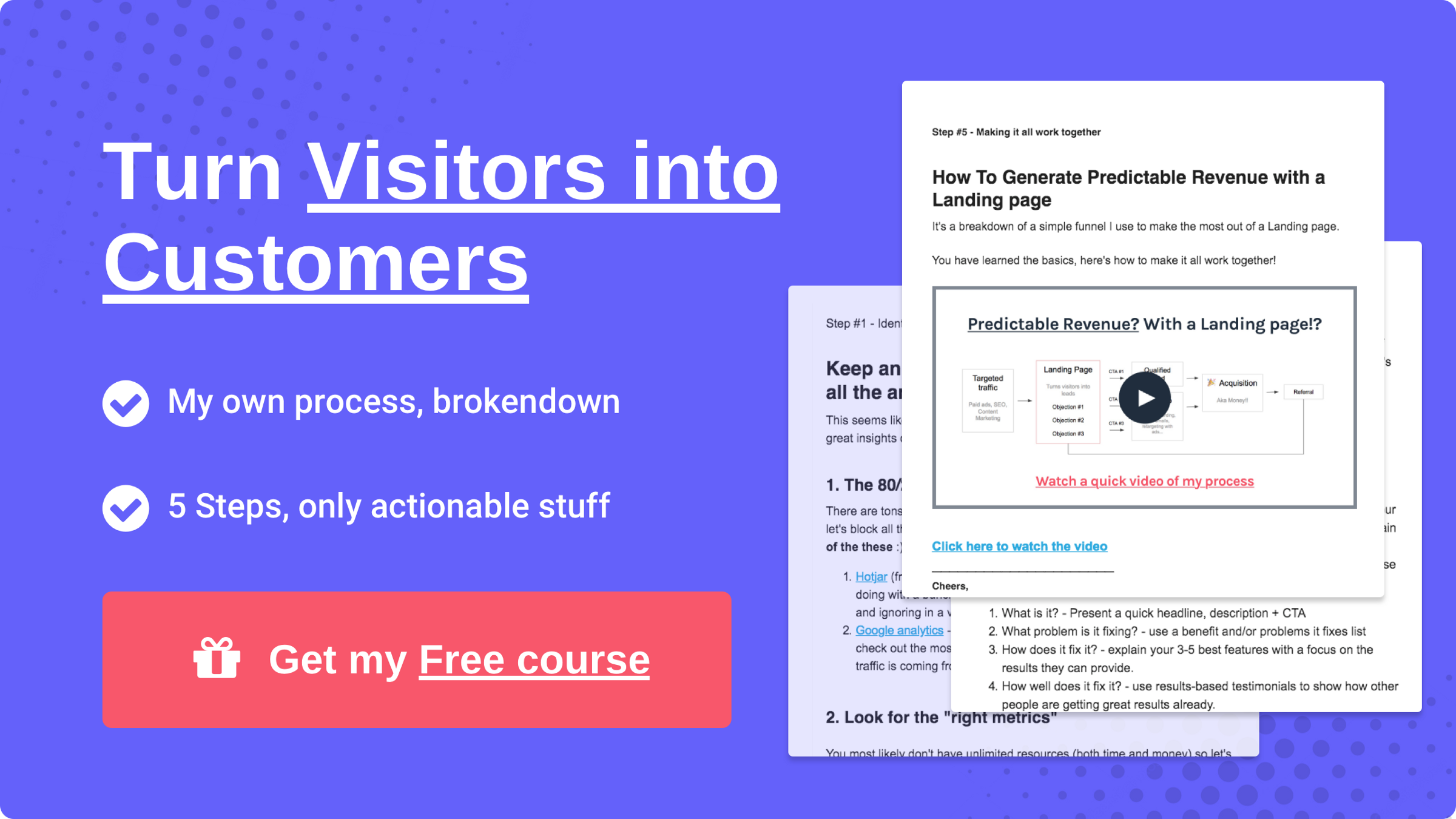 This article was a deep dive on one of the steps from my 5 step process to help SaaS startups improve their conversion and revenue. Sign up for my free email course to go from very little leads to a website that converts potential customers!