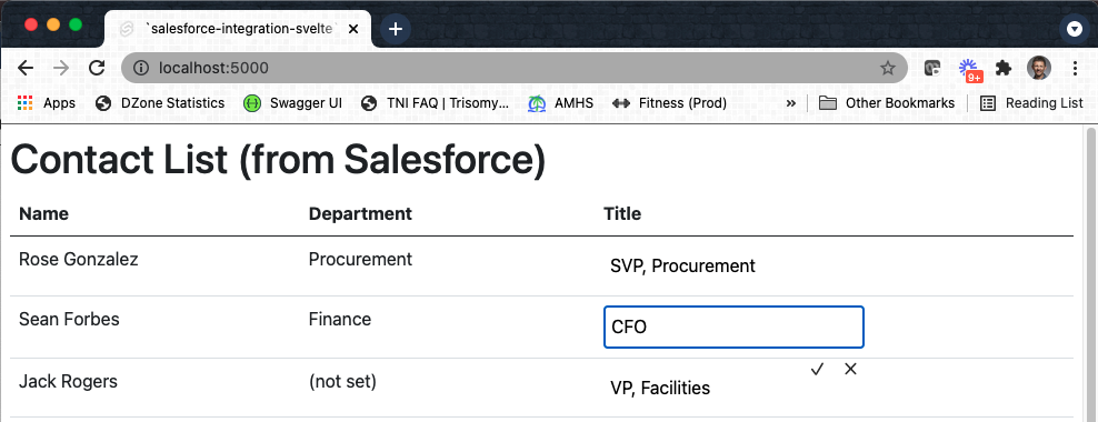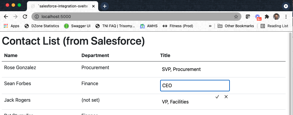 In this example, I used Svelte for the very first time. In fact, within a short period of time (less than two hours for me), I went from an empty folder to a functional application that reads and updates contact information in Salesforce … without actually using a Salesforce client.