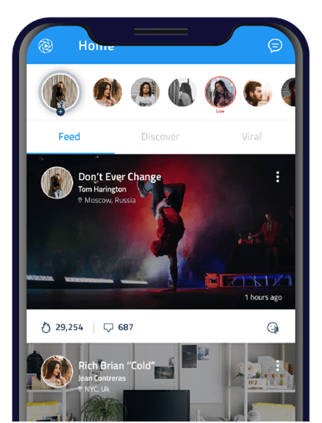 · It that has the combined features of different social network apps like Instagram, Snapchat, YouTube, and Spotify.