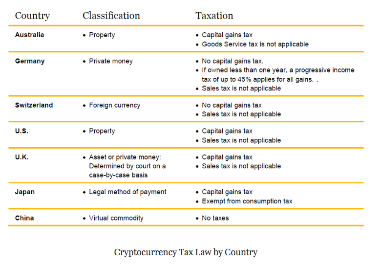 Or the taxes might be as complicated as in US, where cryptocurrencies are considered as assets, which means that you have to pay tax on every transaction.