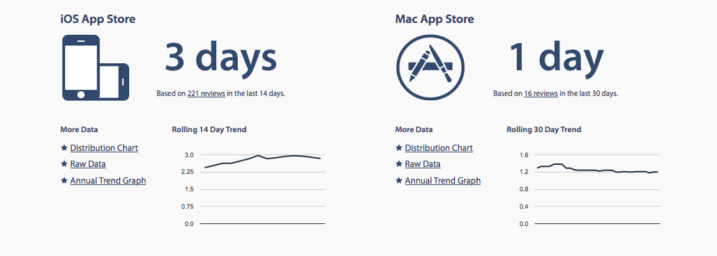 On face value, this is great. Our app has been in review for 3 weeks at one time. So a lot of credit goes to the review time. They have staffed up and they have servered up (got more machines). The averages used to hover at 8 days for the last couple of years.