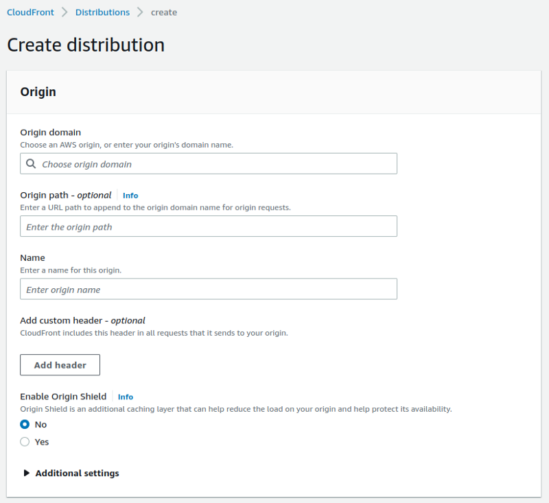 Set the origin domain to your current WordPress site URL, and give a name to your distribution.