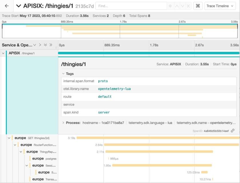 It's always a good idea to check that the design behaves as expected. We can use OpenTelemetry for this. For more information on how to set up OpenTelemetry in such an architecture, please refer to End-to-end tracing with OpenTelemetry.