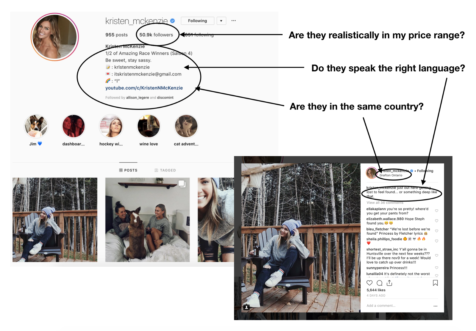 - The category isn’t as important in comparison to how much an audience trusts what the specific influencer has to say: Traditionally, most marketers assume that the best results come from working with influencers that create content about the same topic as your product or service. For example, most shoe brand marketers still assume they should work with fashion or streetwear influencers because they create content about the same topic as their product. The problem is that the opposite is usually true. When it comes to taking action (following a new account or buying a product from an influencer’s recommendation), people don’t care about what an influencer is talking about, they care about how much they trust the specific influencer who is doing a promotion_._ If an audience trusts an influencer, they’ll buy whatever that influencer recommends as long as it seems like a sincere recommendation that will bring value to their lives. If an audience doesn’t trust what an influencer says (because every other post is an insincere sponsored post), they won’t take any action based on their promotion no matter how much the topic is in line with their interests. And how do you measure how much an audience trusts what an influencer has to say? Organic engagement rates (but we’ll cover that in a future step).