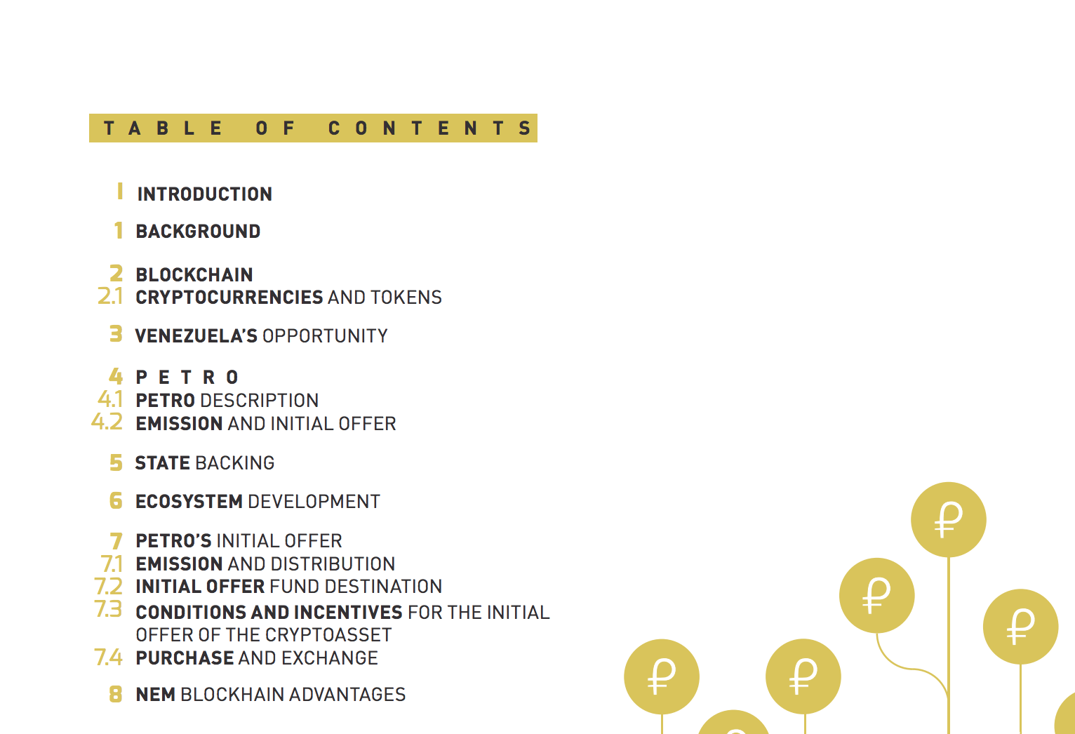 Table of contents of Petro project white paper