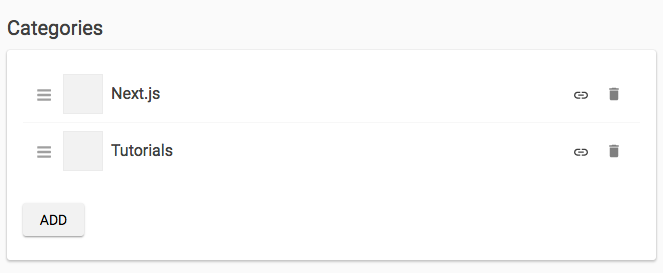 Let’s try to do the same with categories. First, create at least two categories in the Content Studio. I added one for Next.js and one for Tutorials.
