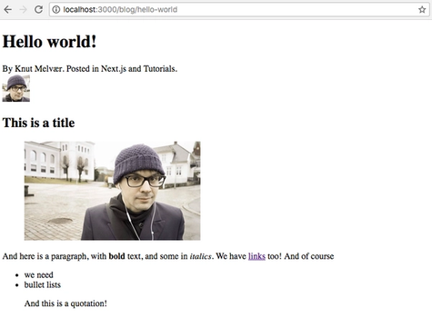 I also added a prop called imageOptions, which controls the default output of images. And that's it! You can customize the output of different elements, and even add your own custom block-types by sending in what we have called “serializers” – those we'll cover in another blog post.