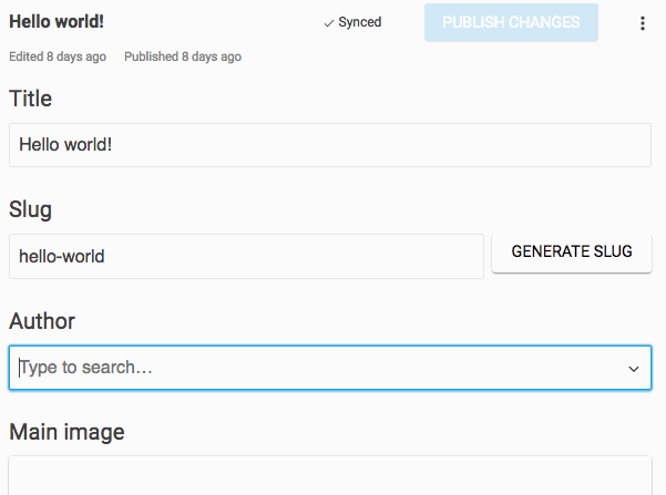 A blog wouldn’t be much without great support for text content. Rich text in Sanity is structured in a way that lets us use it many different contexts: from HTML in the browser to speech fulfillments in voice interfaces. There’s a lot to be said about block-content and the extensibility of it, but in this tutorial we’ll just use the out-of-the-box features that comes with the package block-content-to-react. Install it with npm install --save @sanity/block-content-to-react.