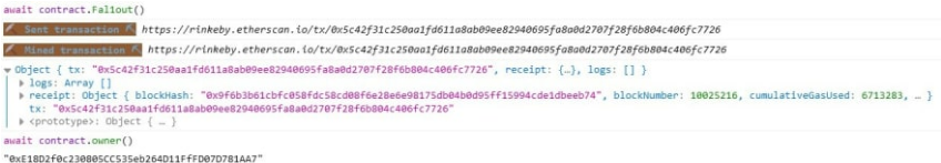 So, let's give it a try. First, we call the function and after that check who is the owner of the contract.