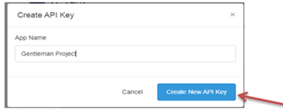 Next, input your App name in the field required and click on "Create New API Key."