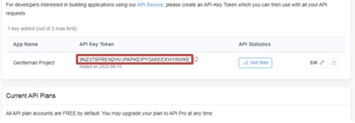 · Then you have your API Key, as shown below.